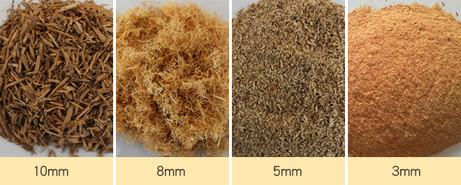 木材粉碎機出料大小根據(jù)客戶用途為其配置相應篩網(wǎng)決定,我們提供的篩網(wǎng)大小有:5mm、6mm、8mm、10mm、12mm、20mm。